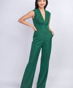Emerald Luxe Sheen V Neck Aiden Jumpsuit