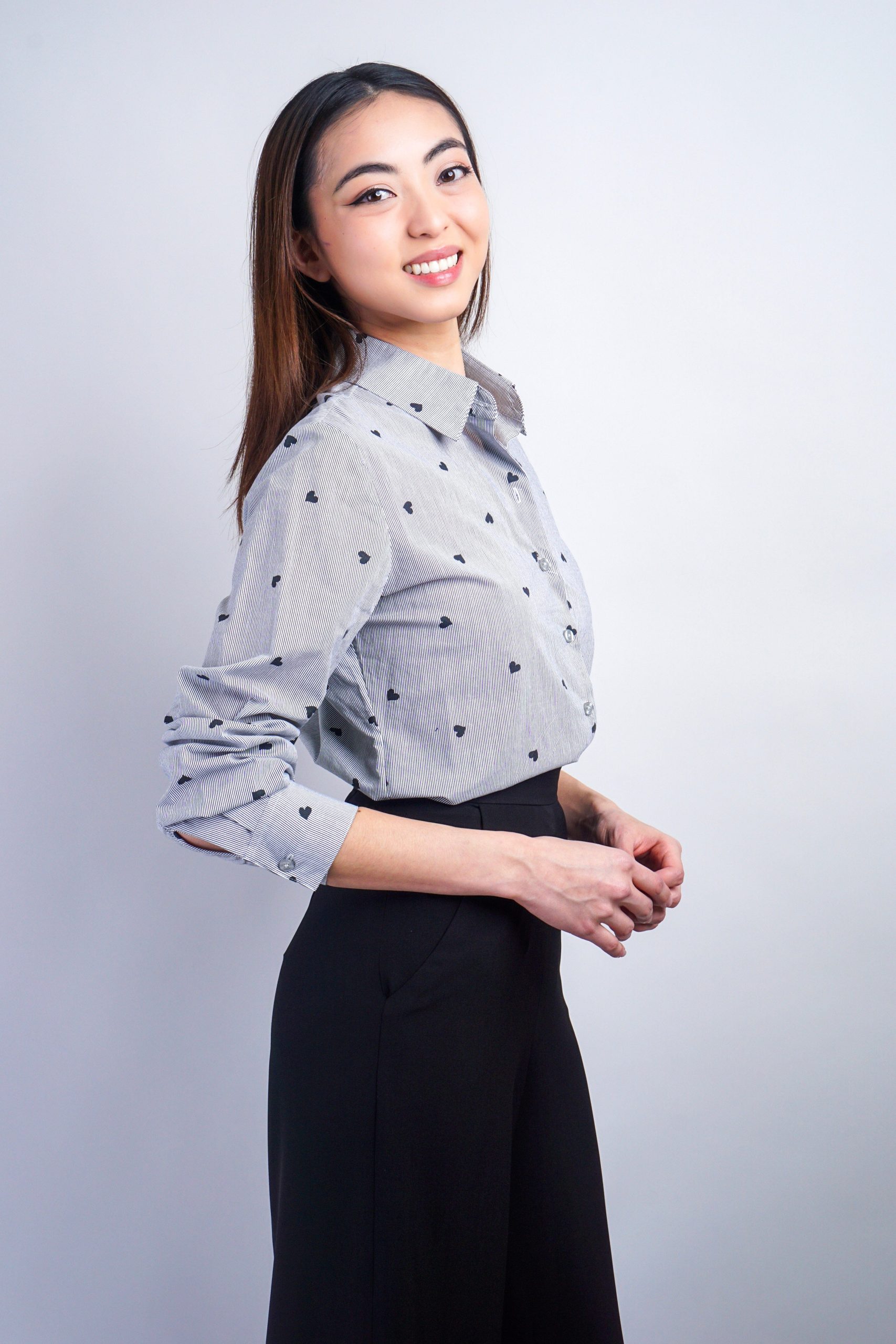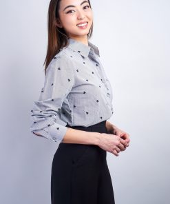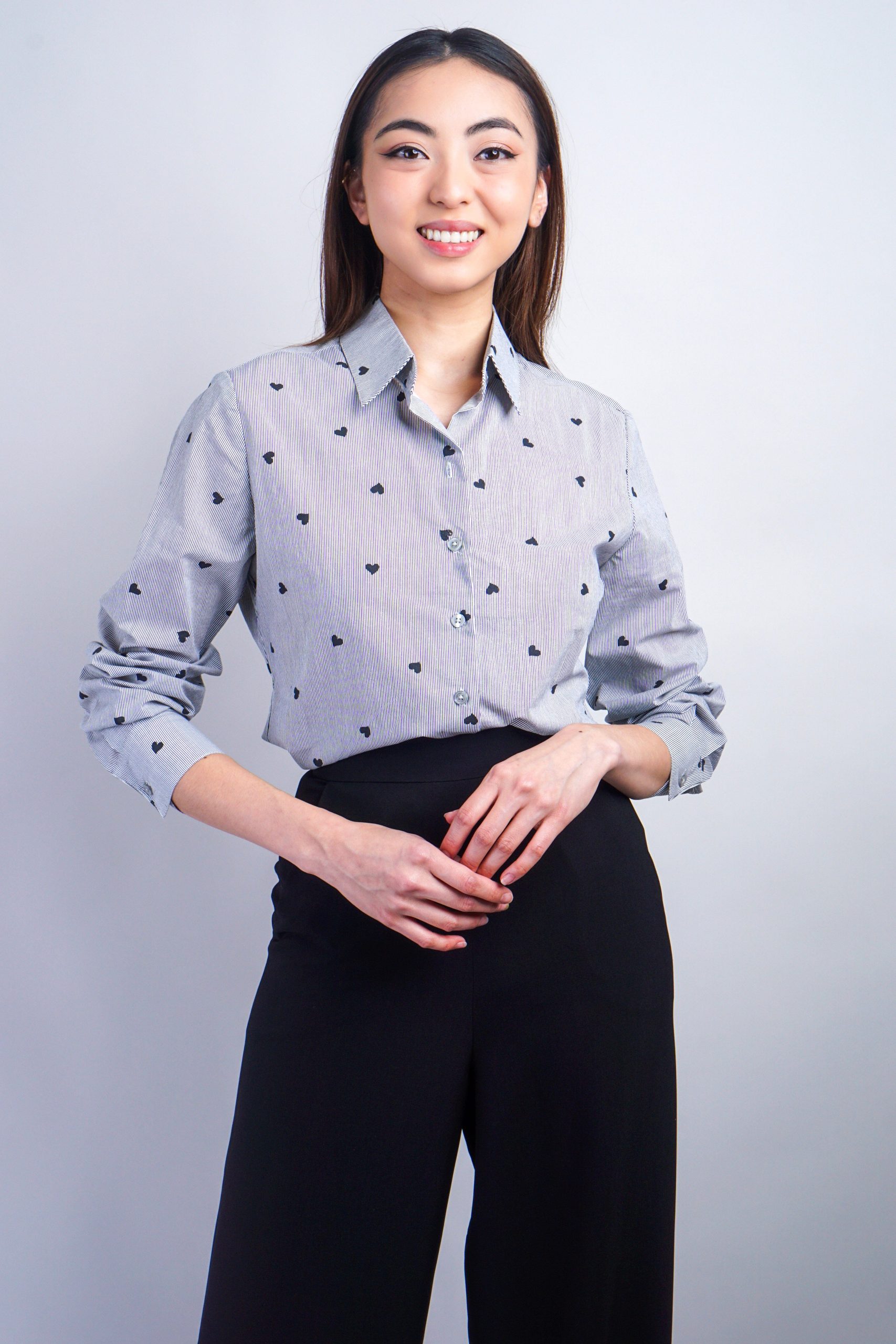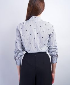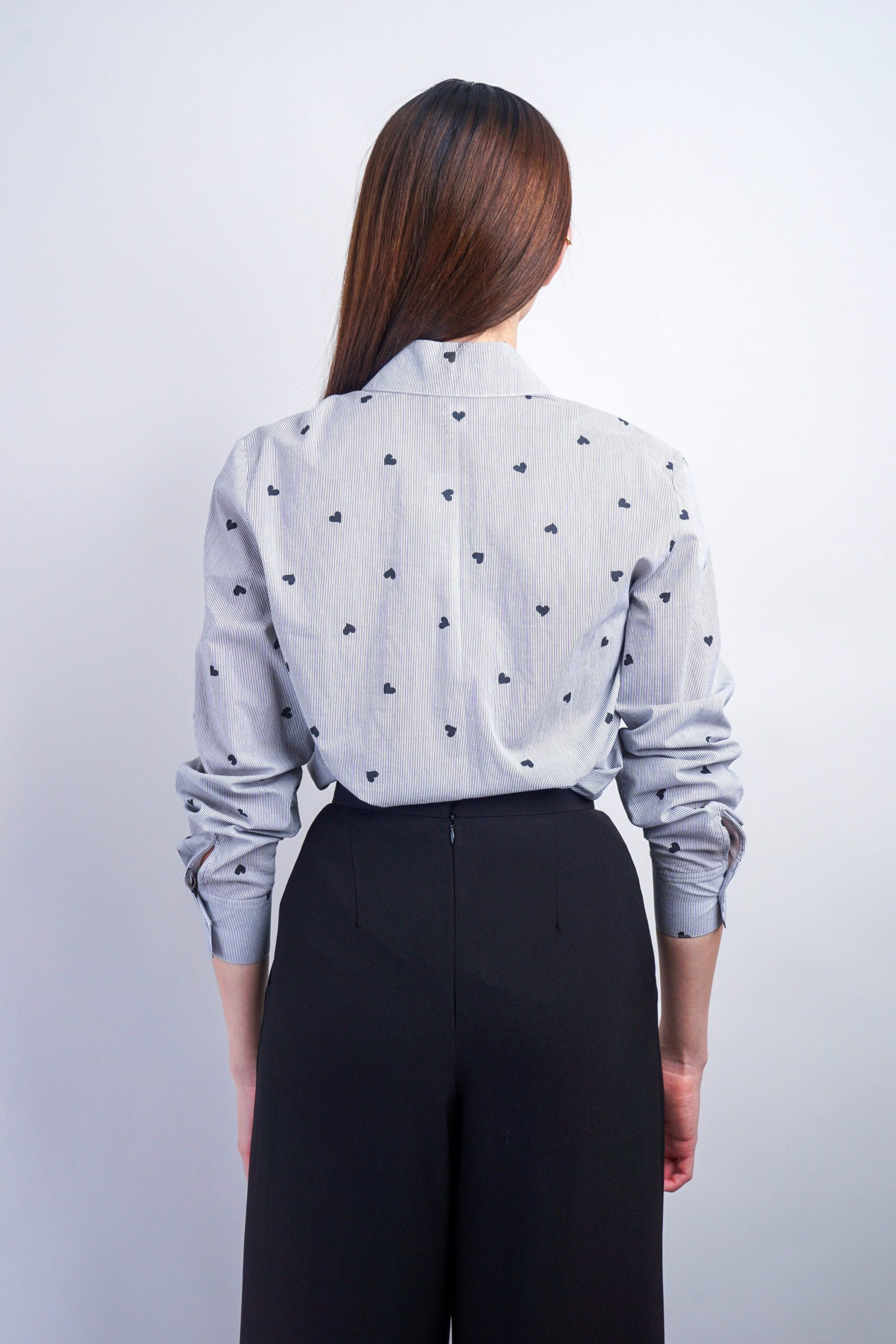 Introducing our Blue Heart Cotton Dress Shirt. Featuring a charming stripe heart print, this button up dress shirt is crafted from 100% washed cotton for minimal shrinkage and color fading. The fabric feels amazingly cooling and breathable, perfect for hot summer weather especially Texas. Versatile and stylish, it pairs perfectly with any bottoms for the workplace or special occasions. Made in Houston, TX.