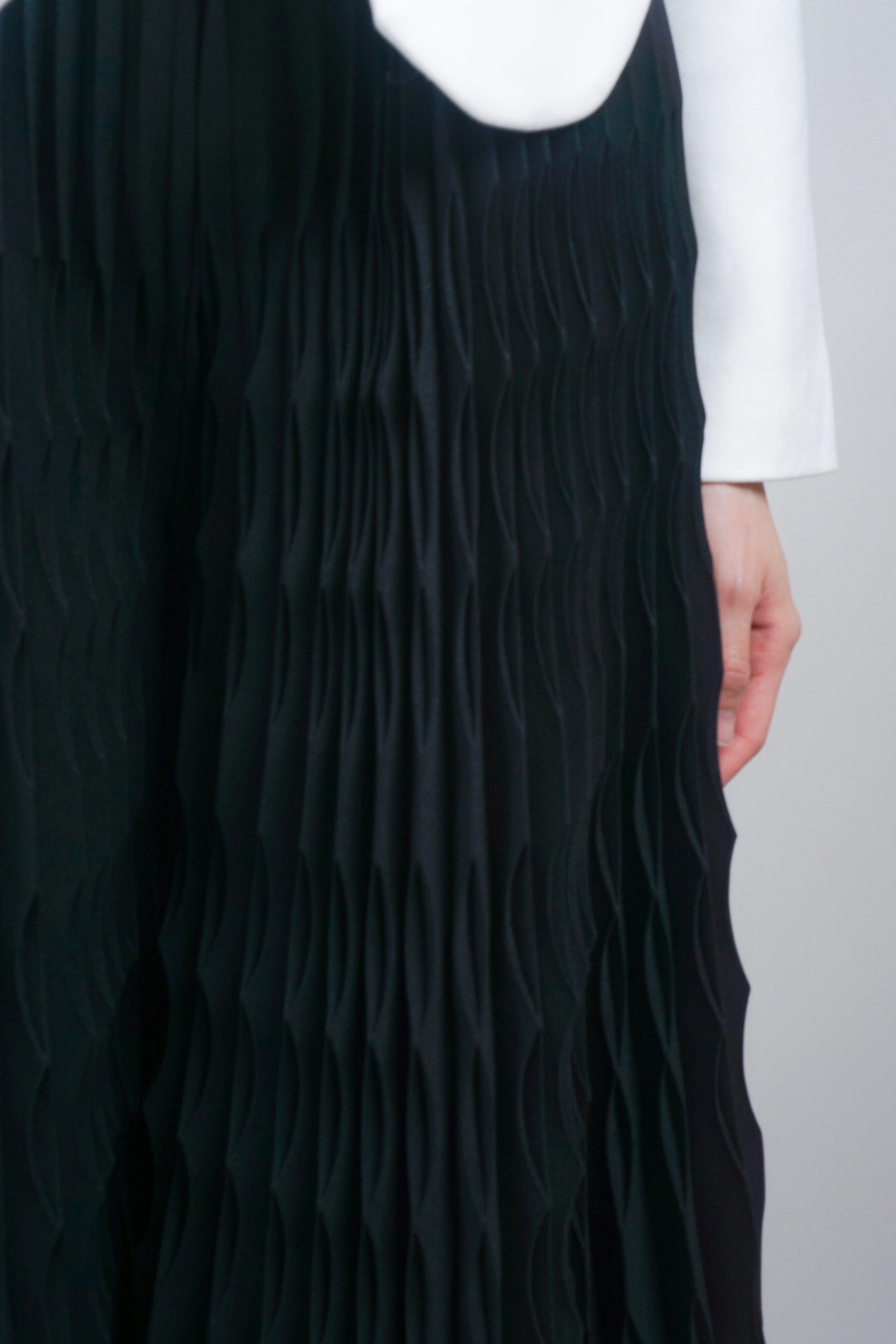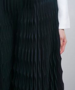 Tailored sophistication meets modern movement in this striking pant. Structured pleats create dimensional texture and visual interest, while the wavy detailing adds an unexpected design element that elevates everyday wear. The deep black hue ensures versatility across your wardrobe, pairing seamlessly with everything from crisp whites to rich jewel tones. Cut for a refined silhouette with thoughtful construction, this piece transitions effortlessly from studio to evening.