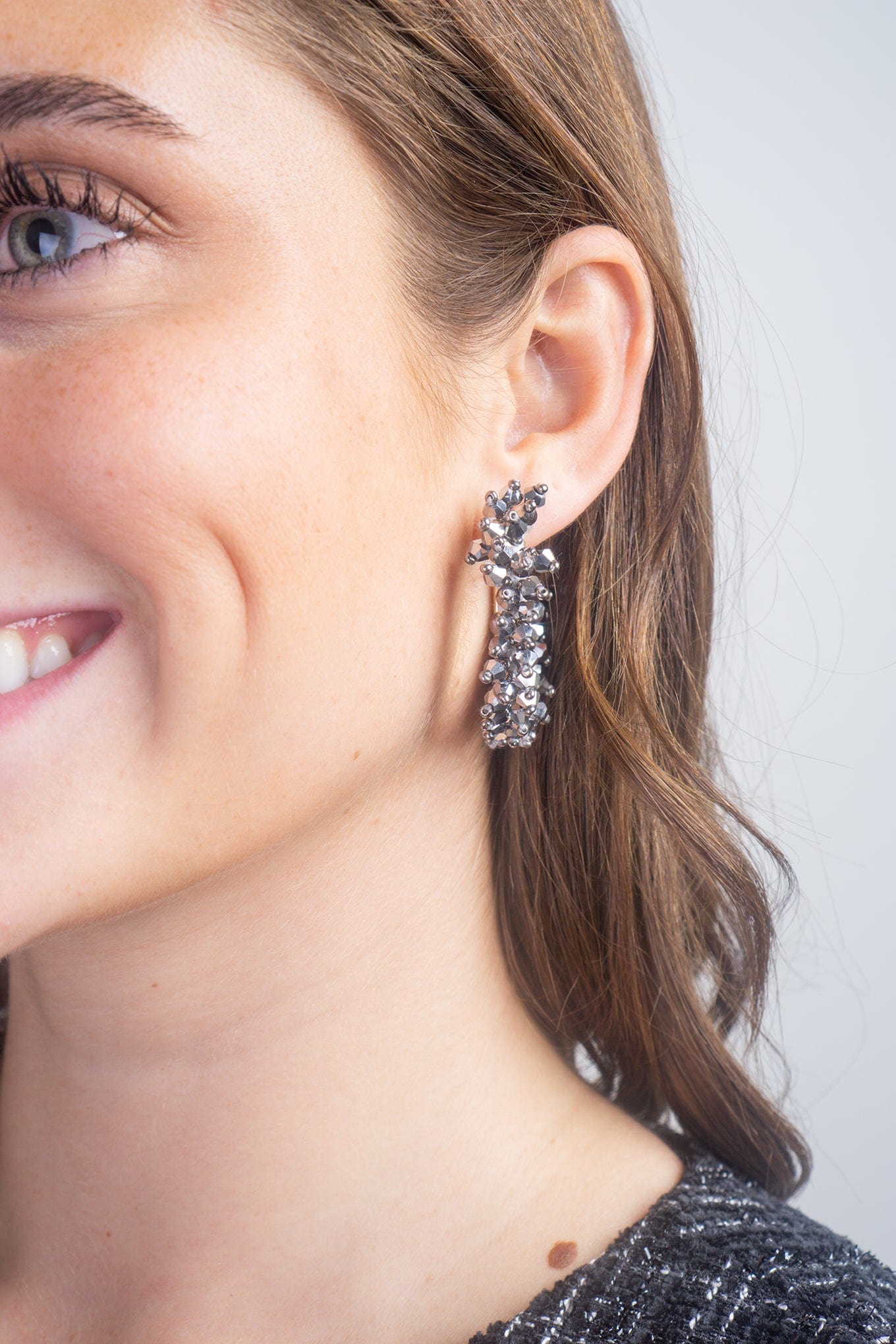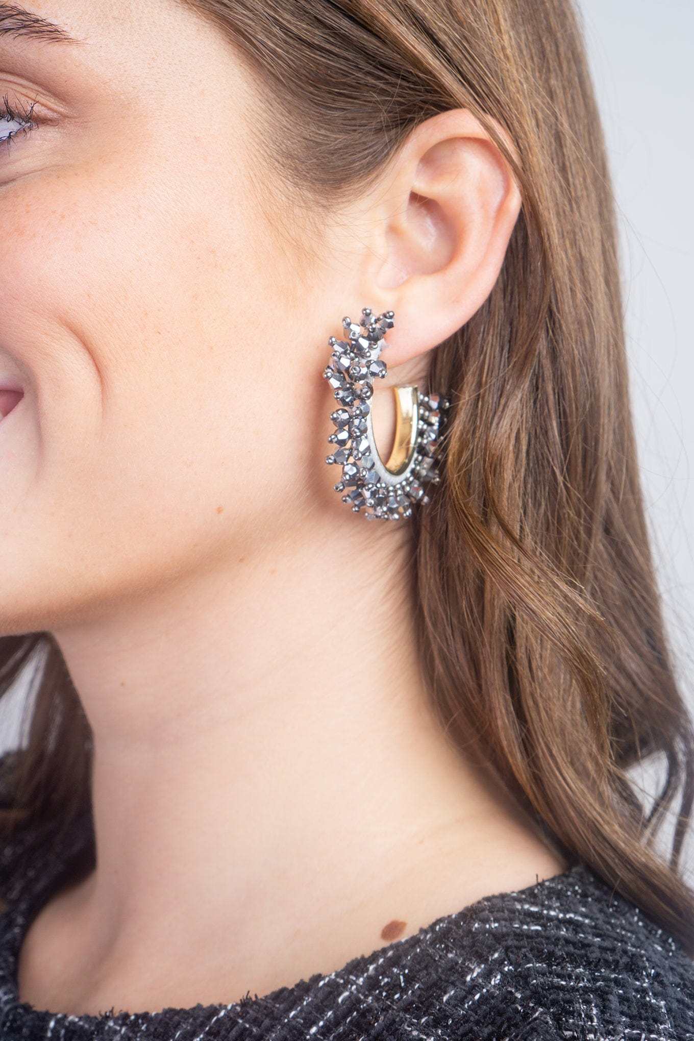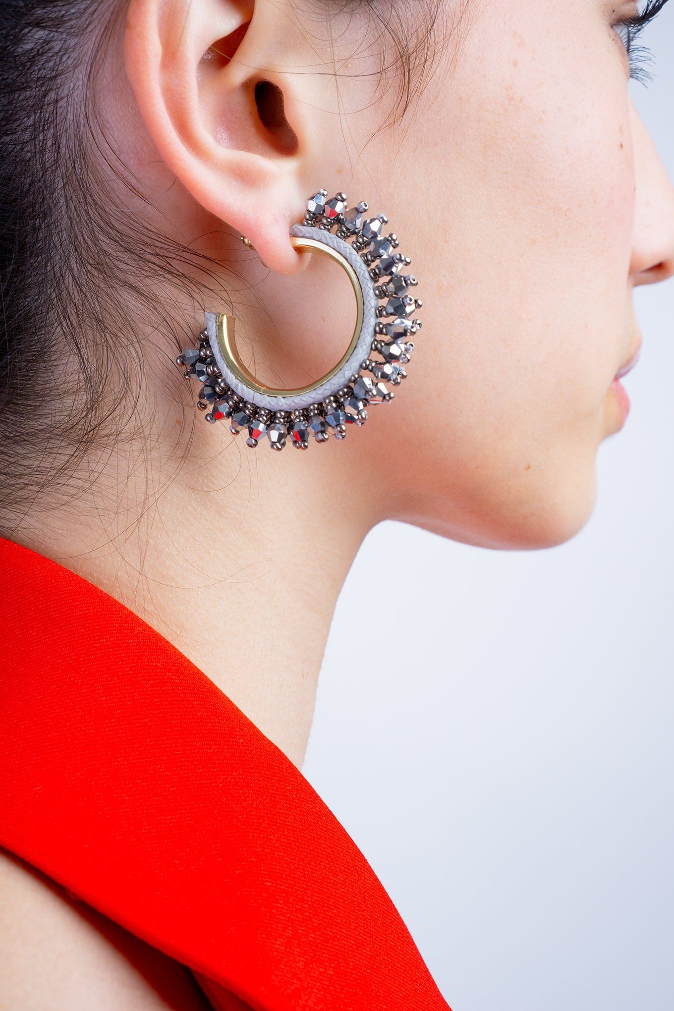 Hematite 40mm hoop earrings featuring a sleek metal base adorned with shimmering hematite beads. Perfect for adding a modern and sophisticated edge to any outfit