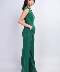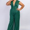 Emerald Luxe Sheen V Neck Aiden Jumpsuit