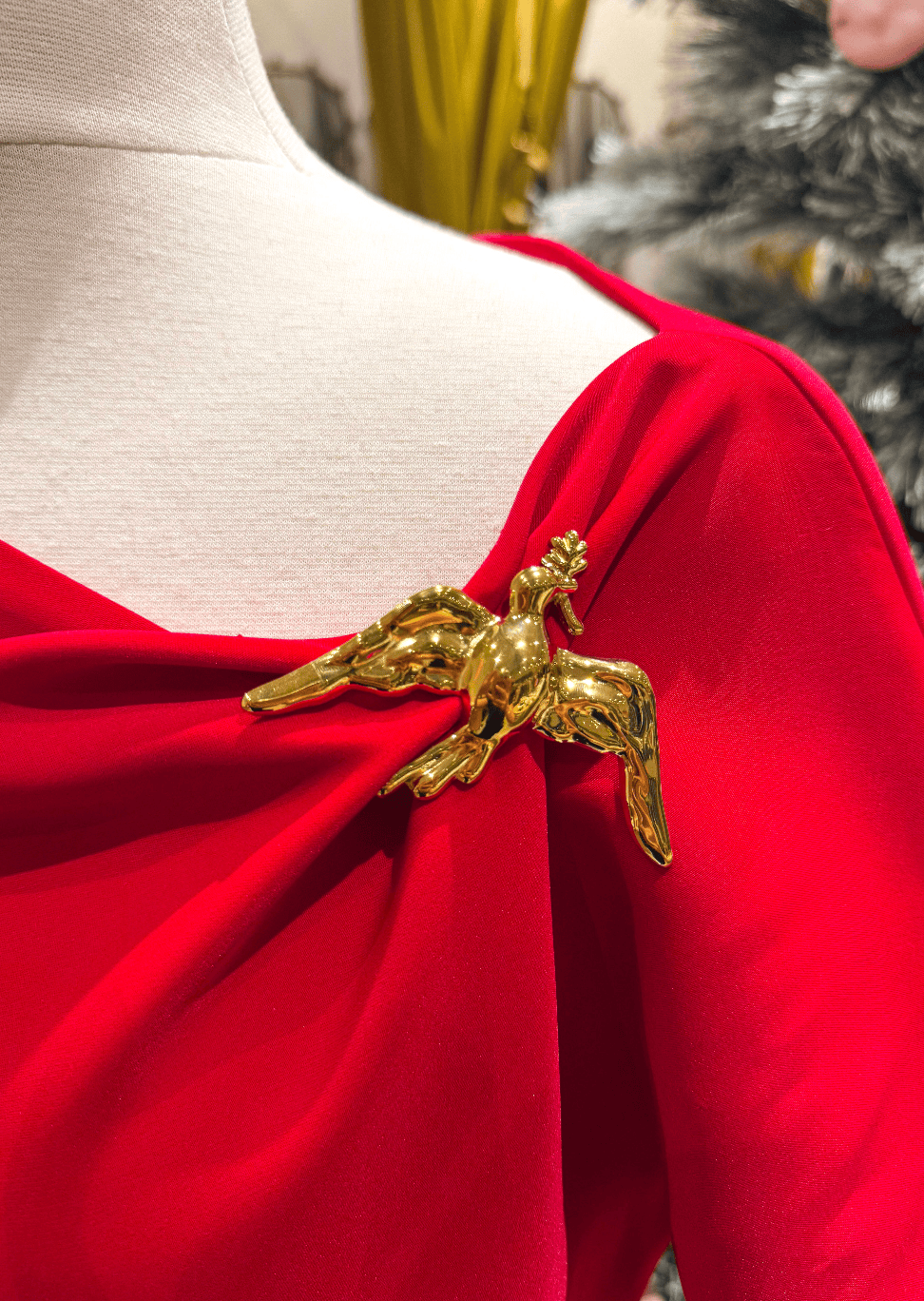 A statement of refined taste, this gold bird brooch embodies timeless elegance through its intricate design and lustrous finish. Each feather is rendered with precision, creating a piece that commands attention without demanding it. Whether adorning a blazer, evening gown, or silk scarf, this brooch transforms any look into a curated expression of personal style.