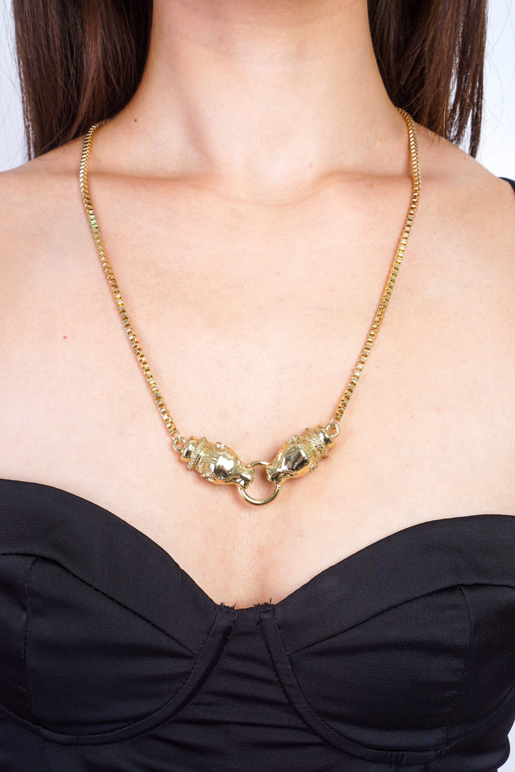 This elegant Gold Lion Ring Necklace combines bold design with refined craftsmanship, making it a striking accessory that elevates any outfit with a touch of majestic sophistication.