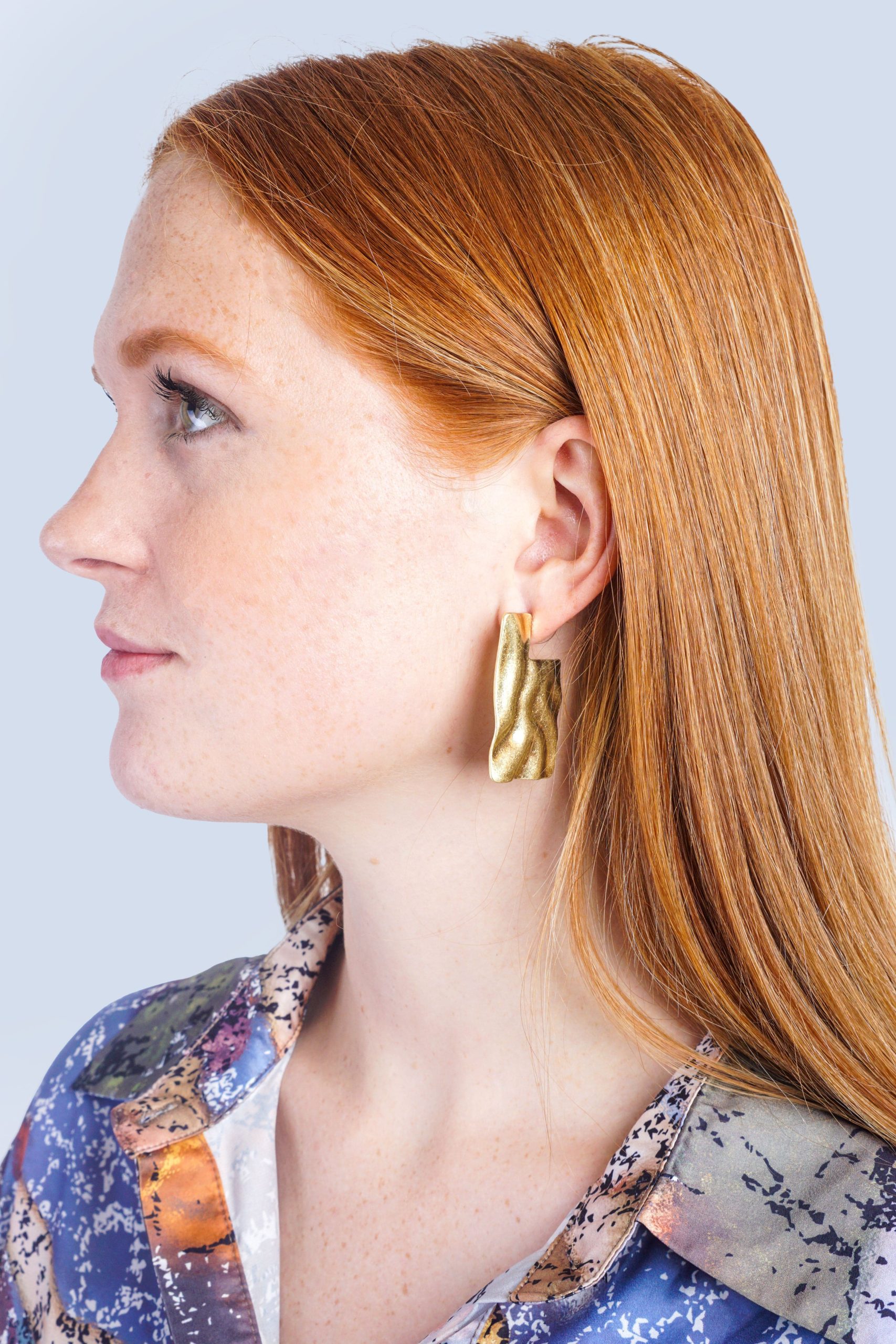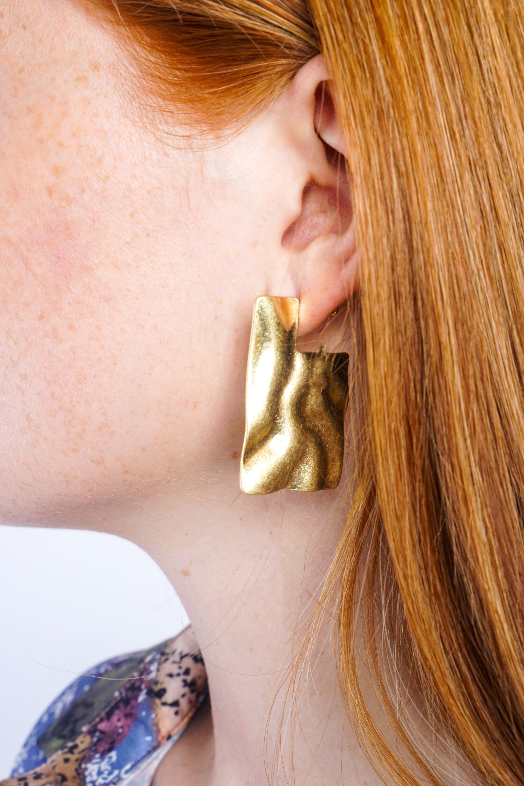 Be the first to review “Matte Gold Wrinkle Rectangle Earrings” Cancel reply