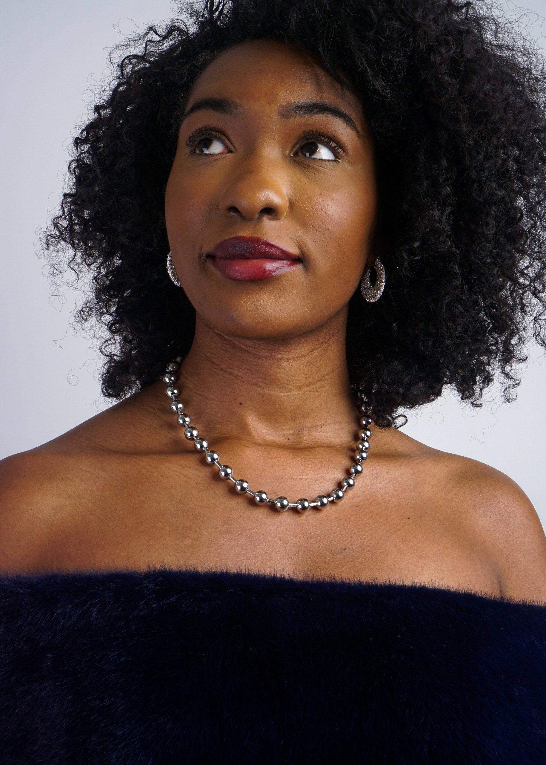 Delicate silver ball chain necklace that effortlessly elevates any ensemble. Each spherical link catches light beautifully, creating subtle movement and dimension. Perfect layered with other pieces or worn solo as a refined statement.