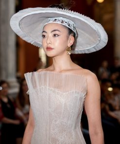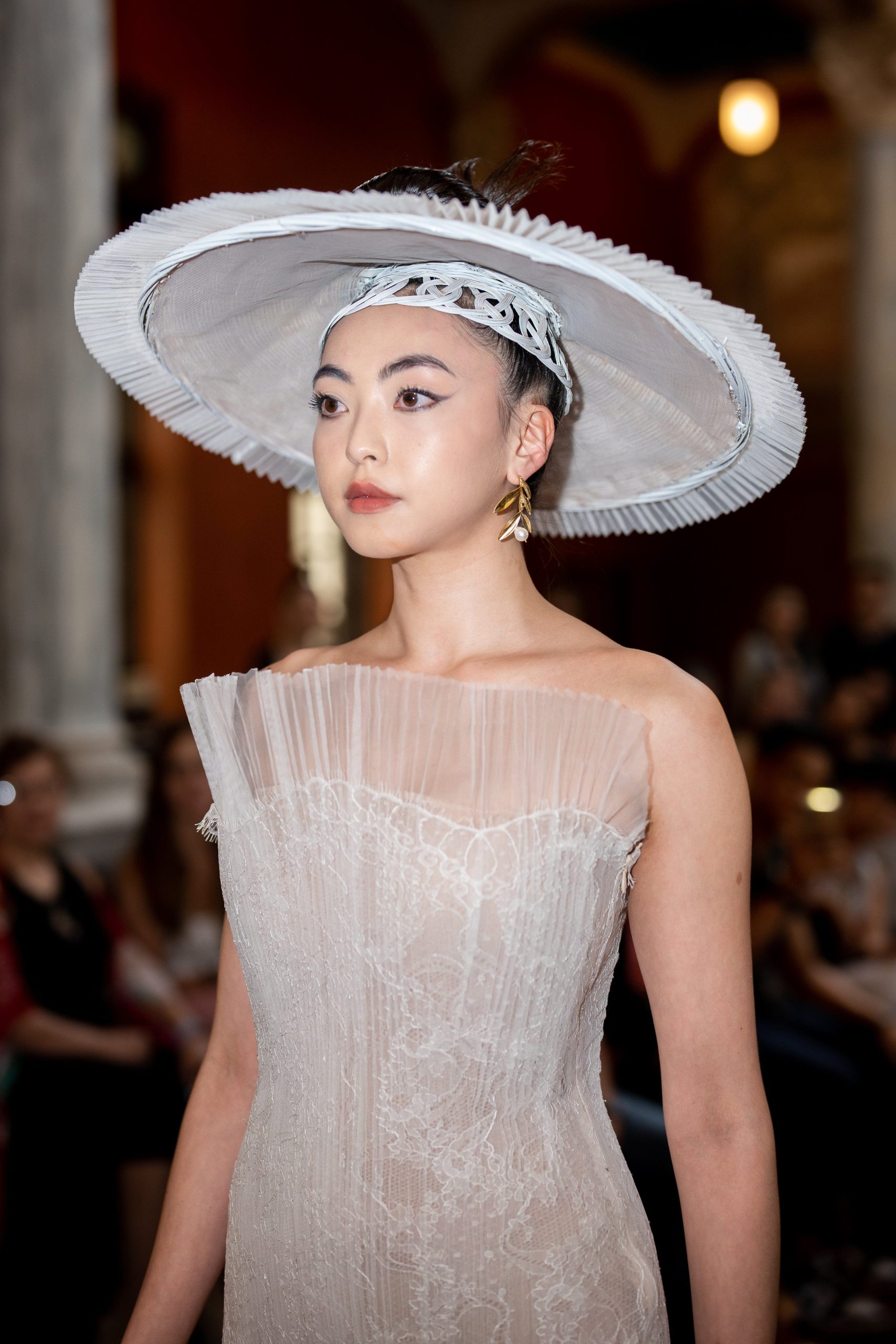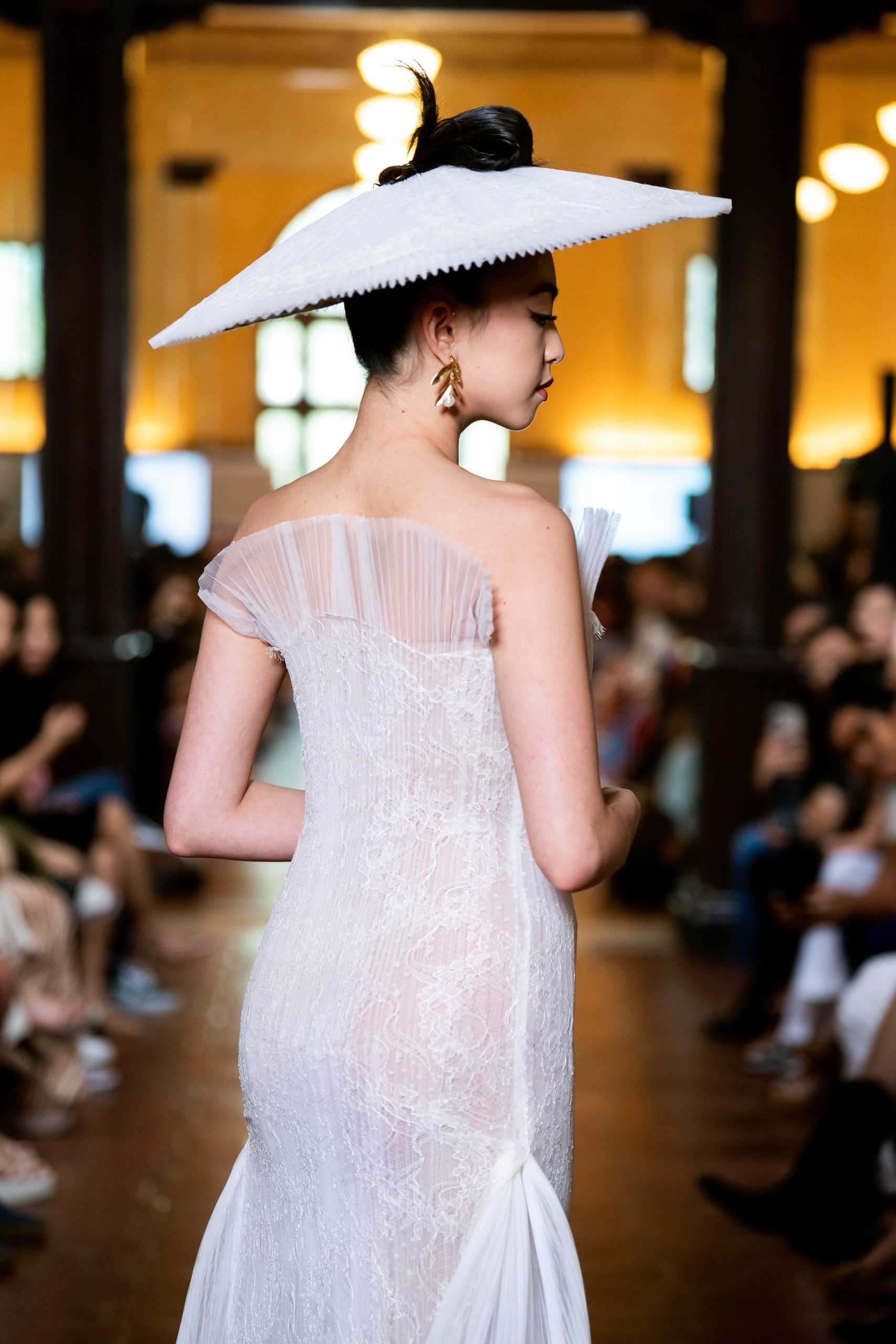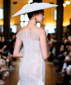 White Lace Pleated Tulle Gown